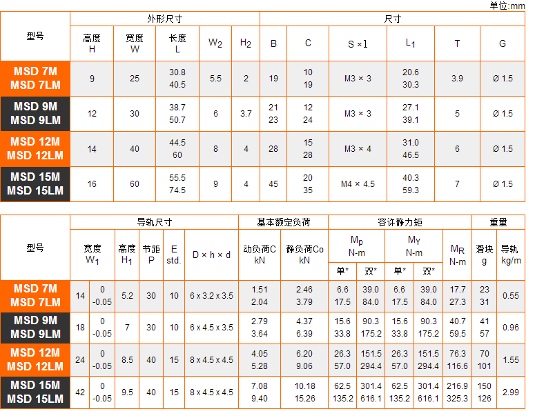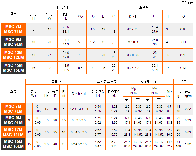 MSC不銹鋼系列直線導軌采用2列歌德圓弧接觸式及45°接觸角的鋼珠設計,提供徑向、反徑向及橫方向四方向的相同額定負荷能力,無論X、Y、Z等軸的各種安裝方式都可以使用。超小型化與低摩擦阻力的設計,適合小型化設備使用。配合潤滑油路設計,能夠均勻的將潤滑油脂注入每個循環(huán)回路,無論各種安裝方式都可以獲得最佳的潤滑效果,并且提升整體的行走順暢度與使用壽命,實現(xiàn)高精度、高可靠度及平滑穩(wěn)定的直線運動需求。