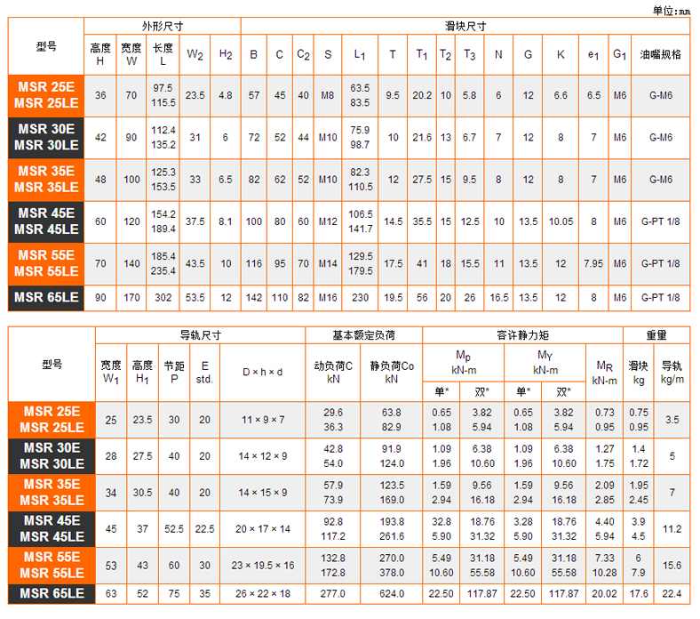 MSR 系列滾柱型直線導(dǎo)軌由于使用滾柱滾動(dòng)體取代一般的鋼珠滾動(dòng)體,因此在相同尺寸的線性滑軌上可提供更高的剛性與負(fù)載能力,特別適用于講求高精度、高負(fù)載與高剛性的設(shè)備需求。